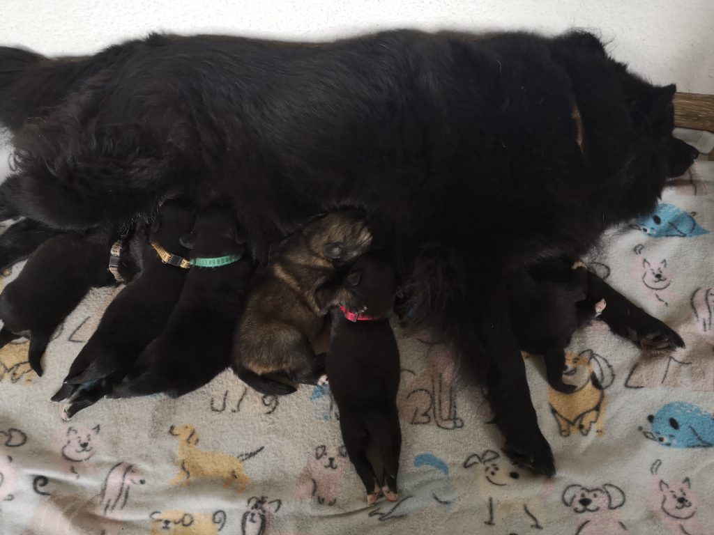 Kleine Großspitzchen sind gut auf die Welt gekommen. Nun heißt es wachsen und Großwerden. Daher ist ein guter Platz an der Milchbar ganz entscheidend. Glücklicherweise sorgt die Mama gut für alle ihre Kinder.